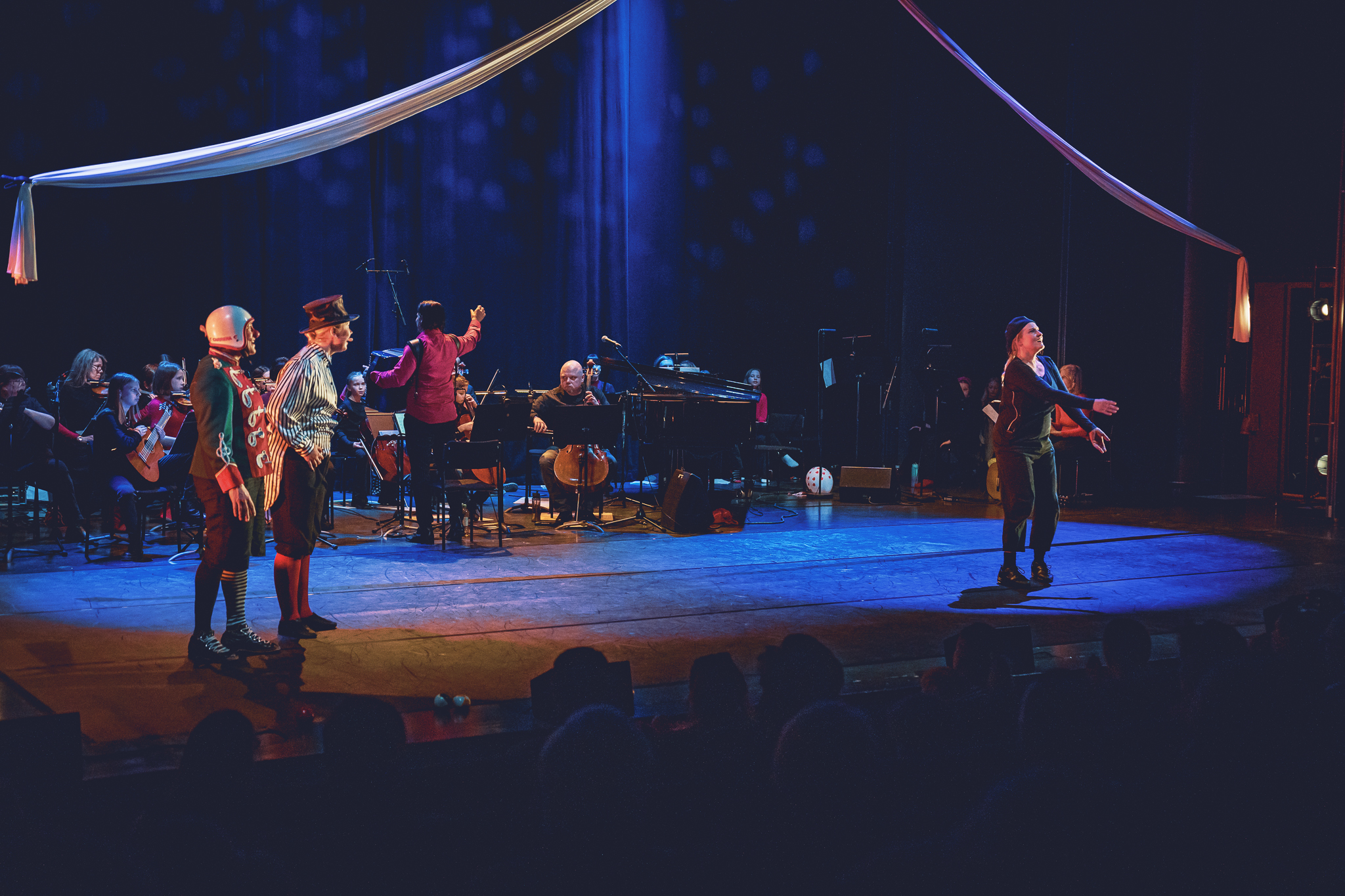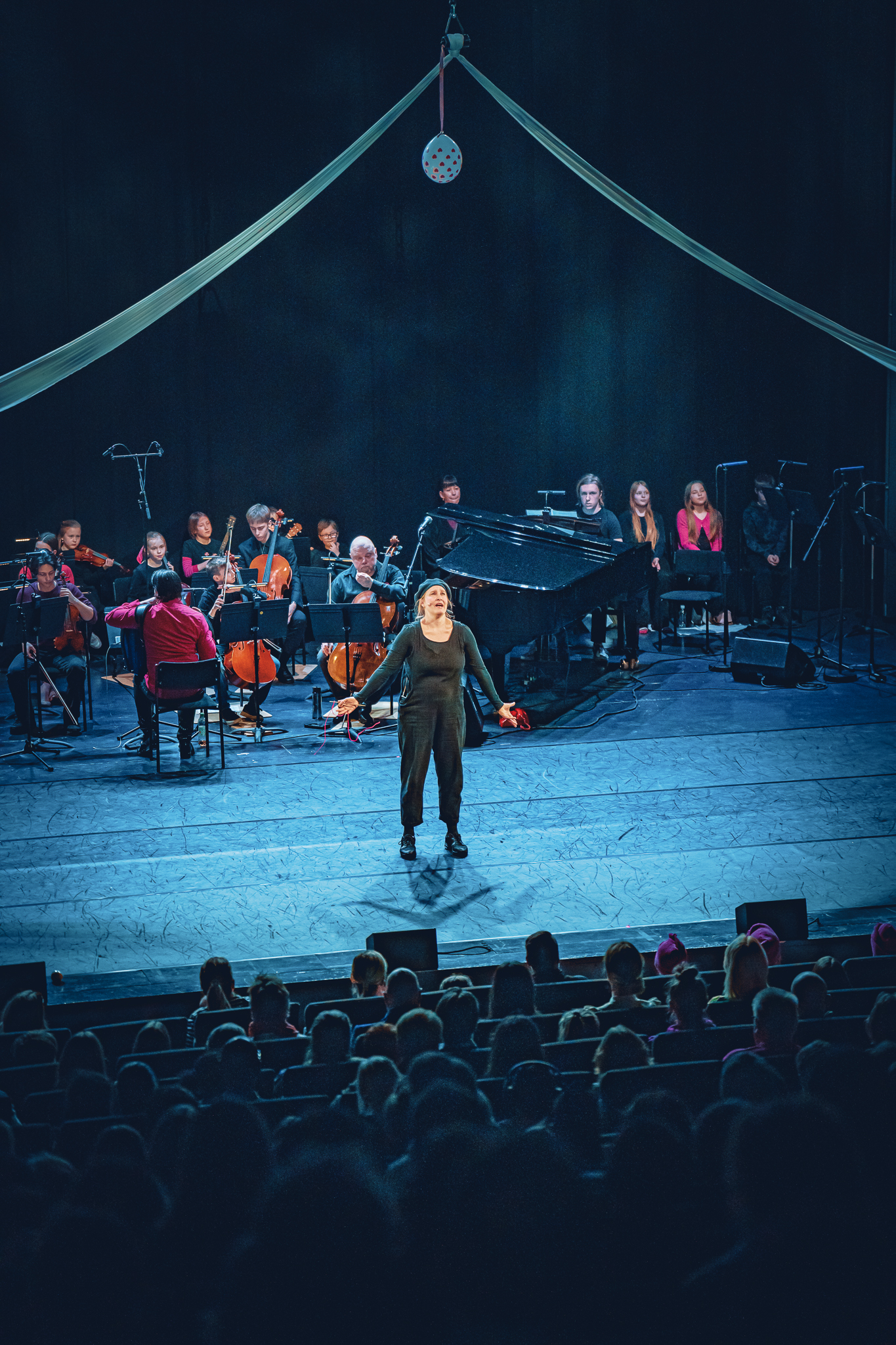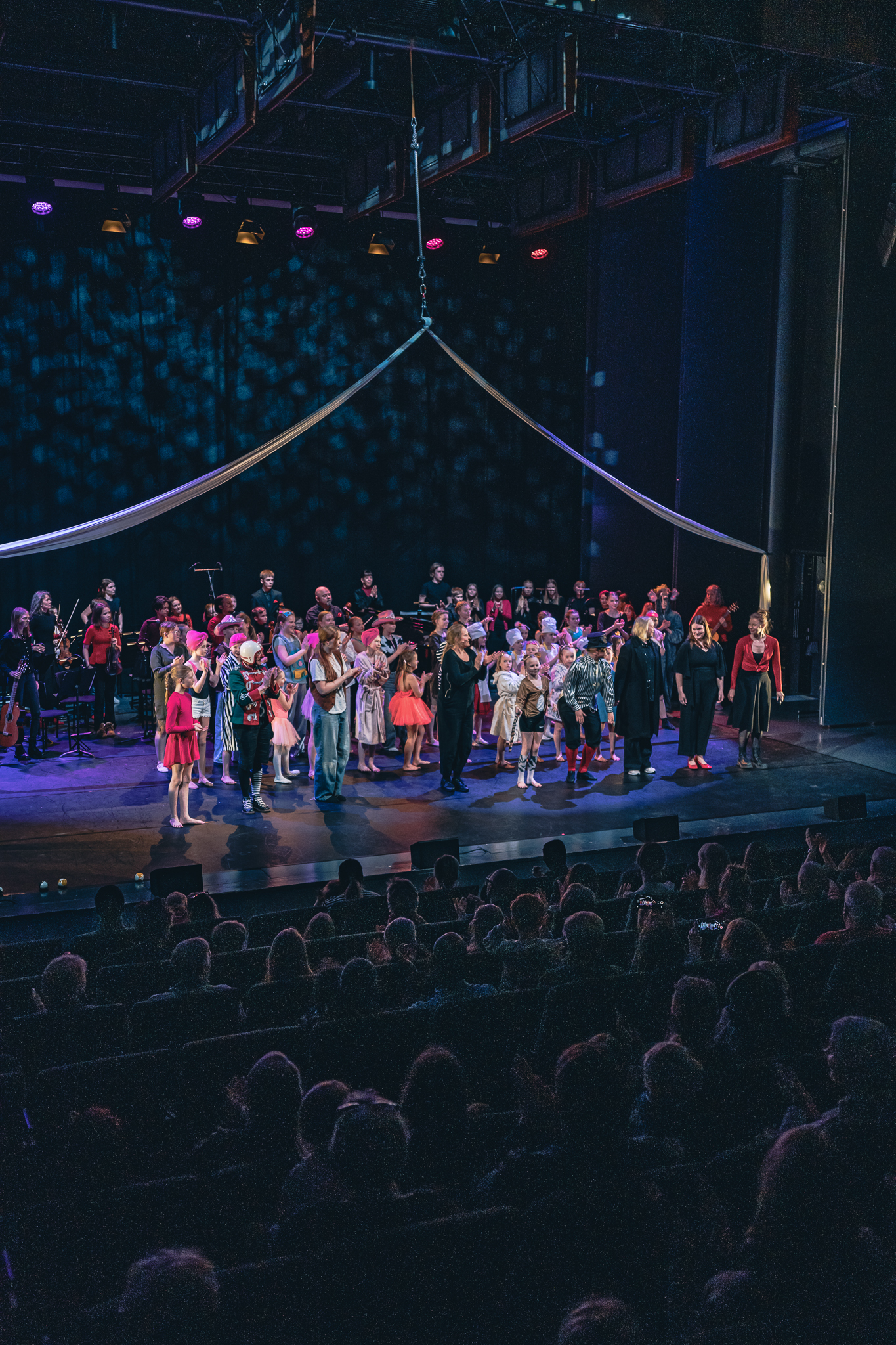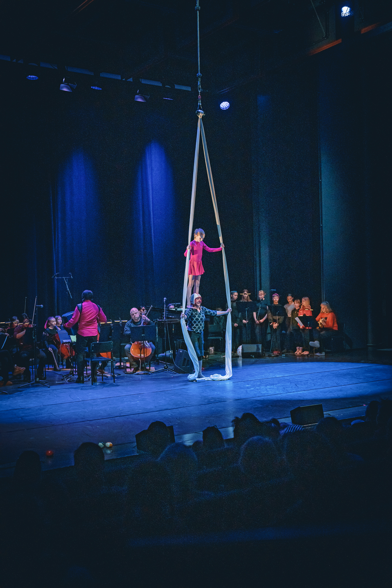 På scenen medverkade över 60 barn och ungdomar tillsammans med professionella artister och en orkester bestående av lärare. Den tvåspråkiga föreställningen kombinerade musik, dans, teater och cirkus till en berättelse som berörde både barn och vuxna.