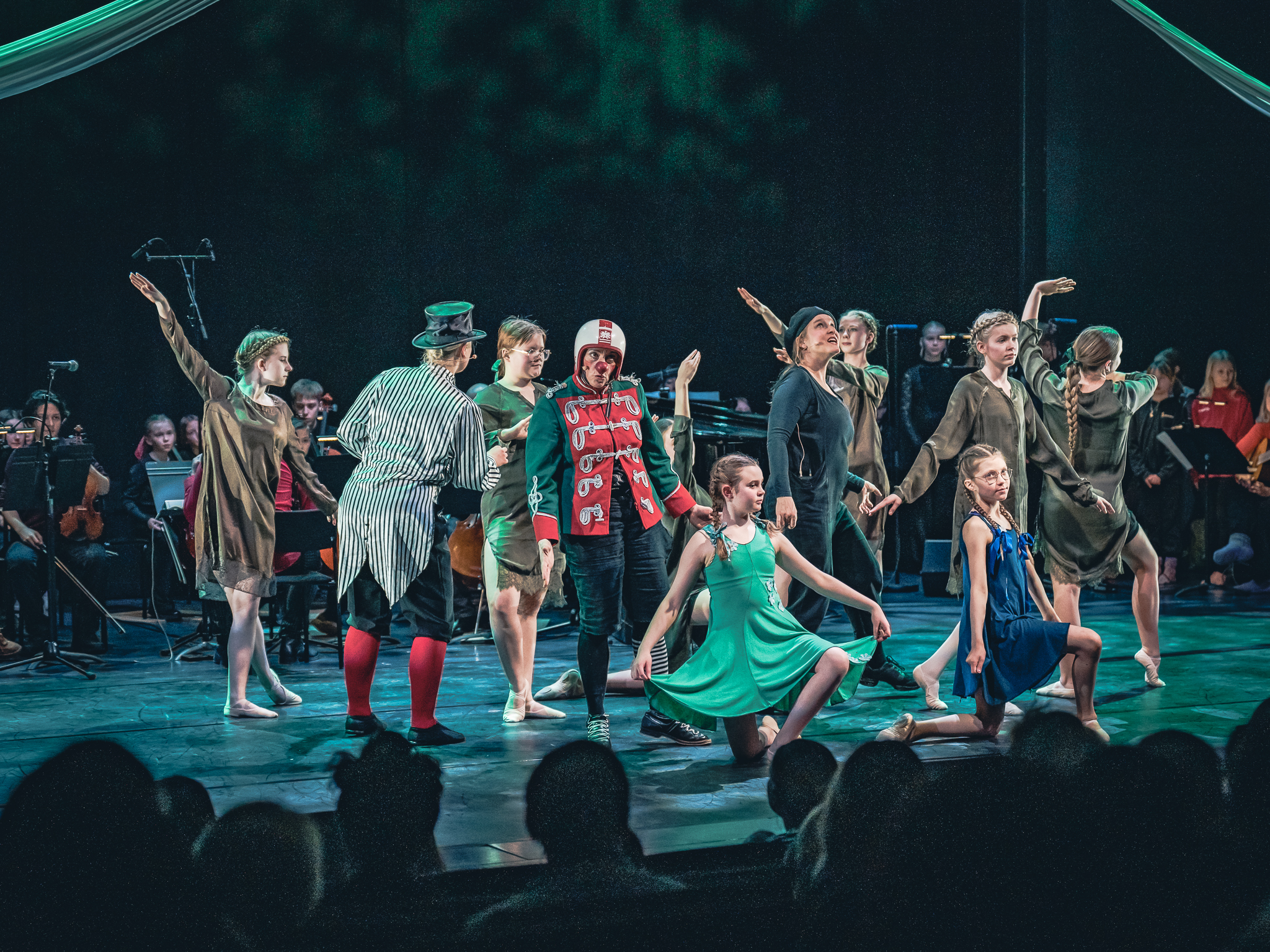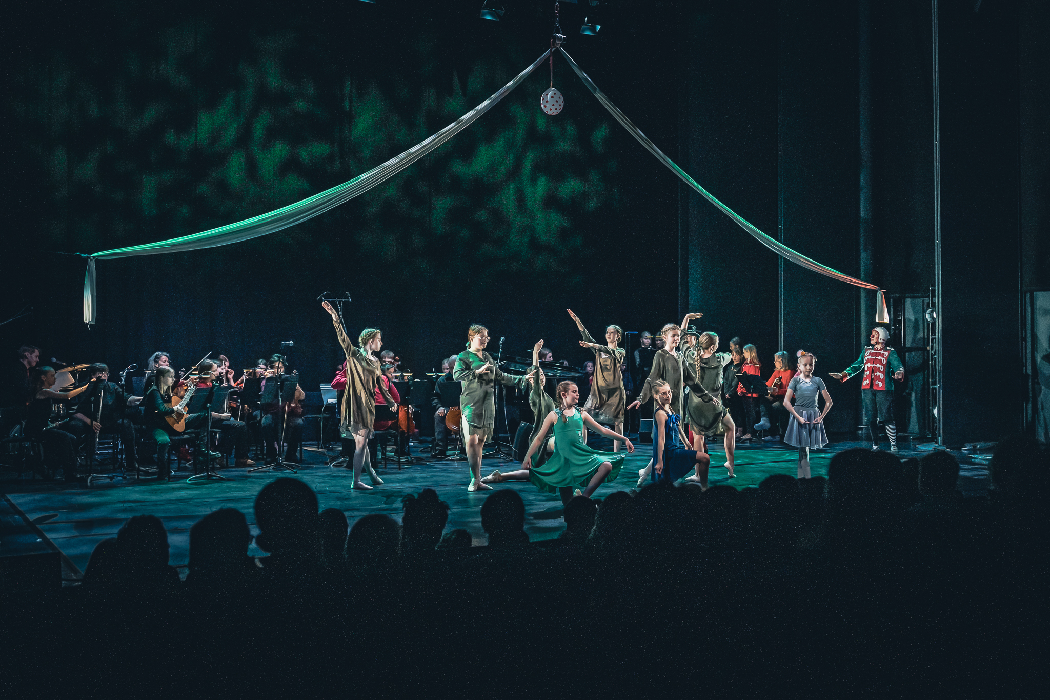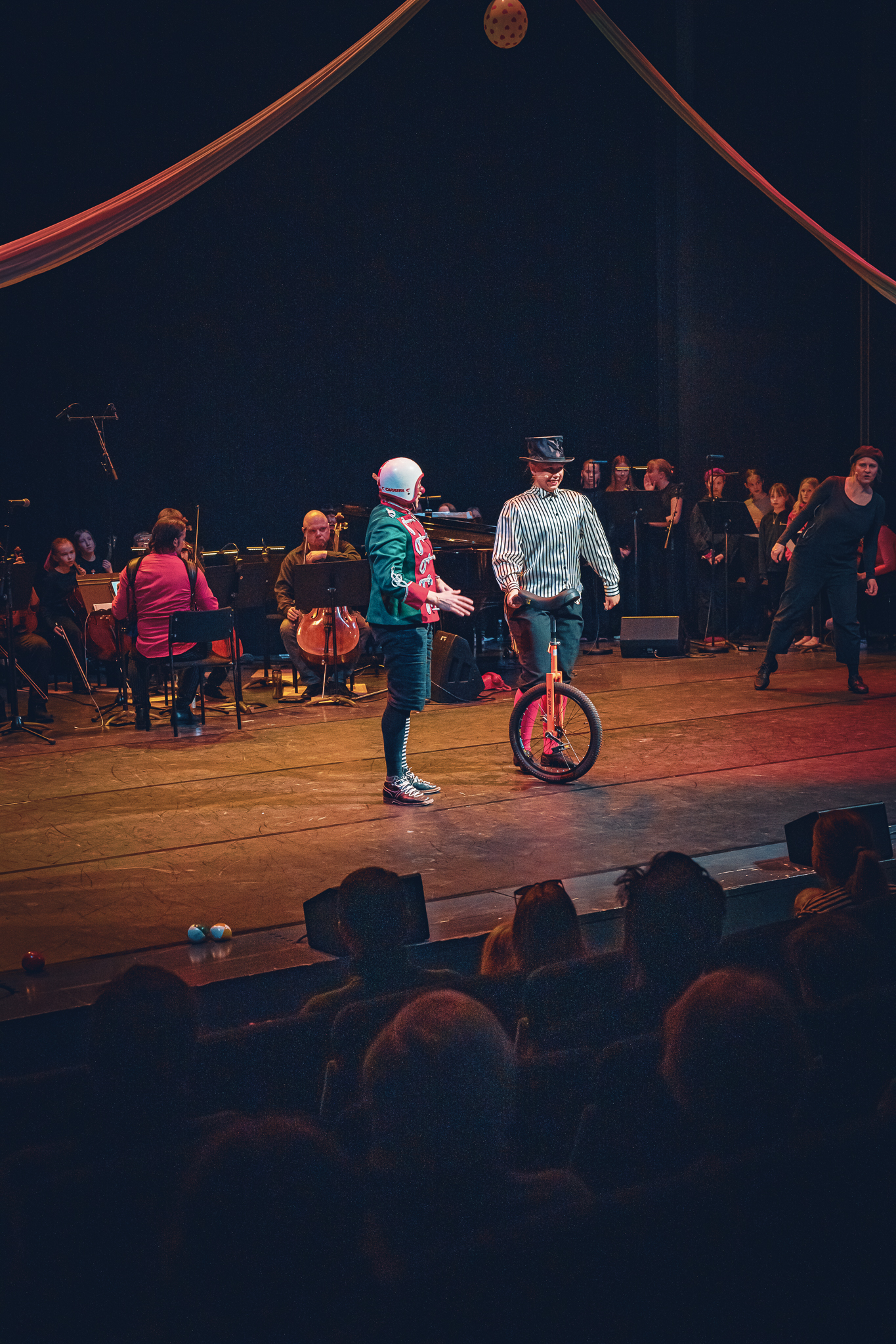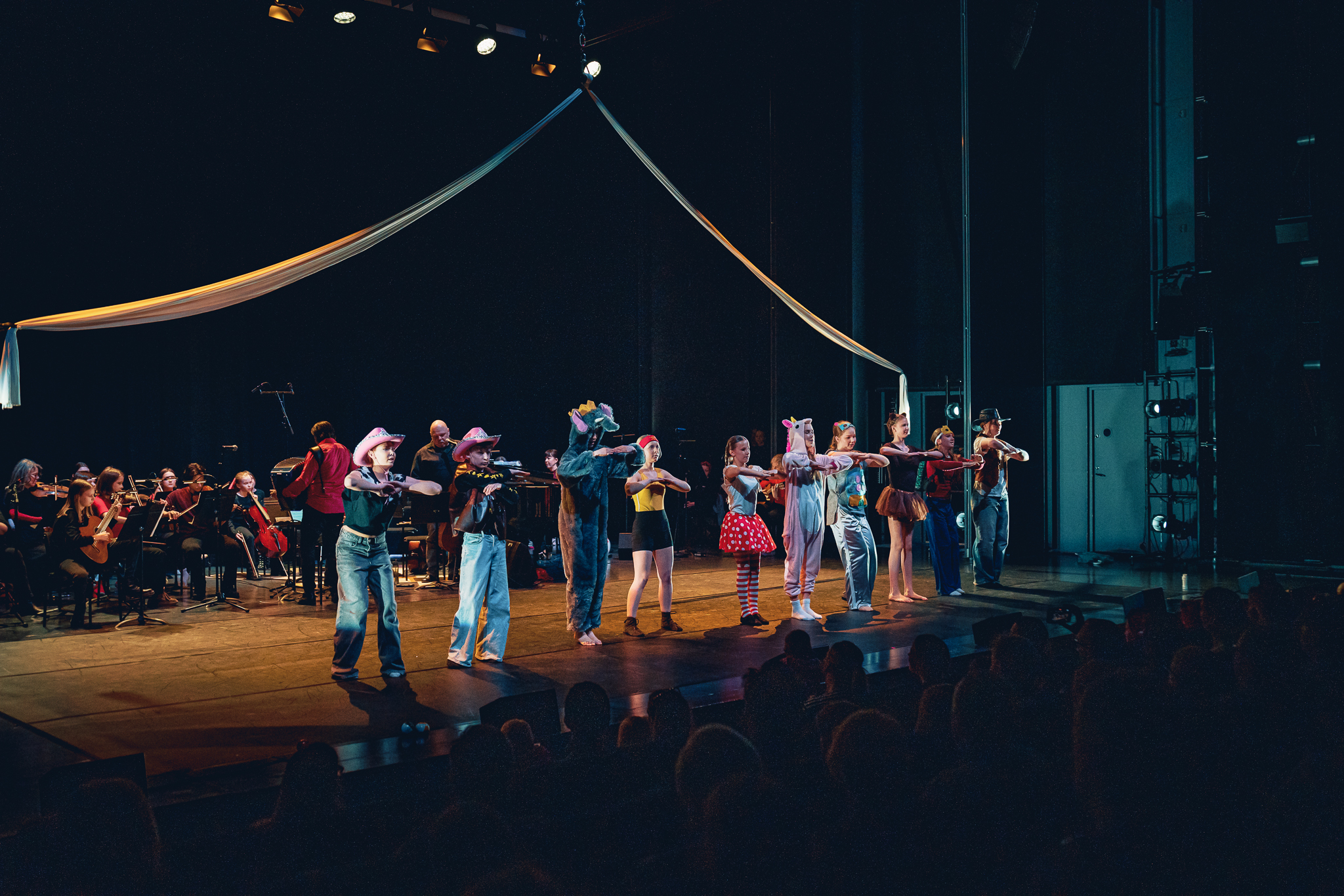 På scenen medverkade över 60 barn och ungdomar tillsammans med professionella artister och en orkester bestående av lärare. Den tvåspråkiga föreställningen kombinerade musik, dans, teater och cirkus till en berättelse som berörde både barn och vuxna.