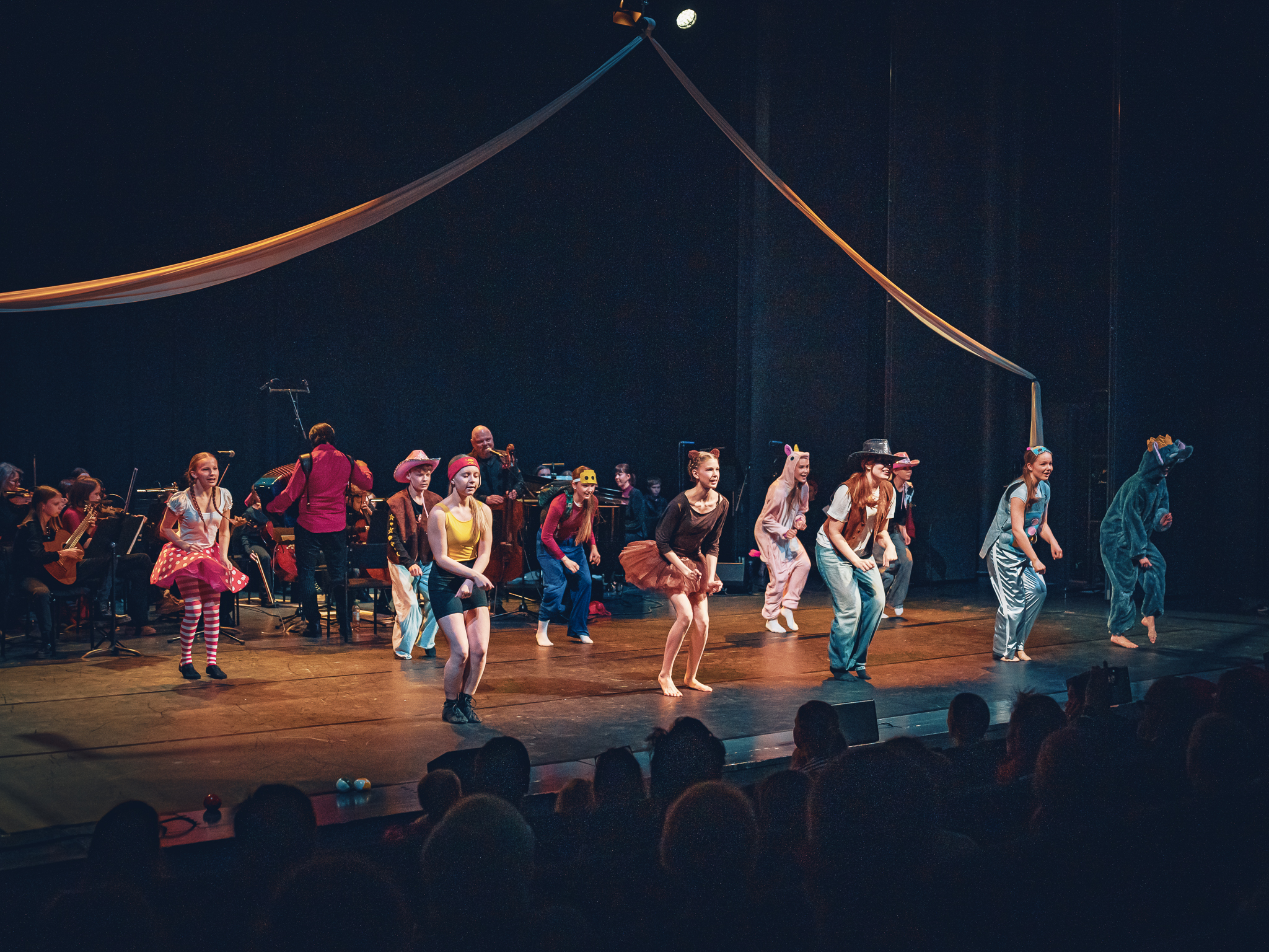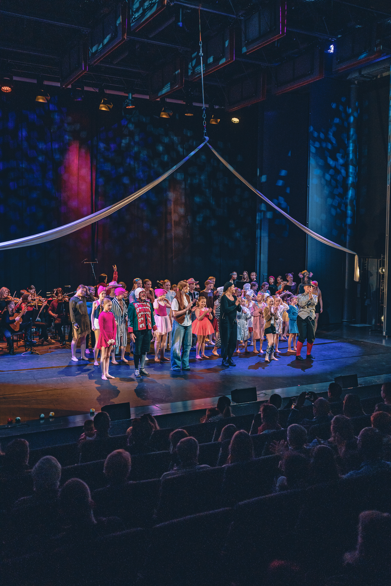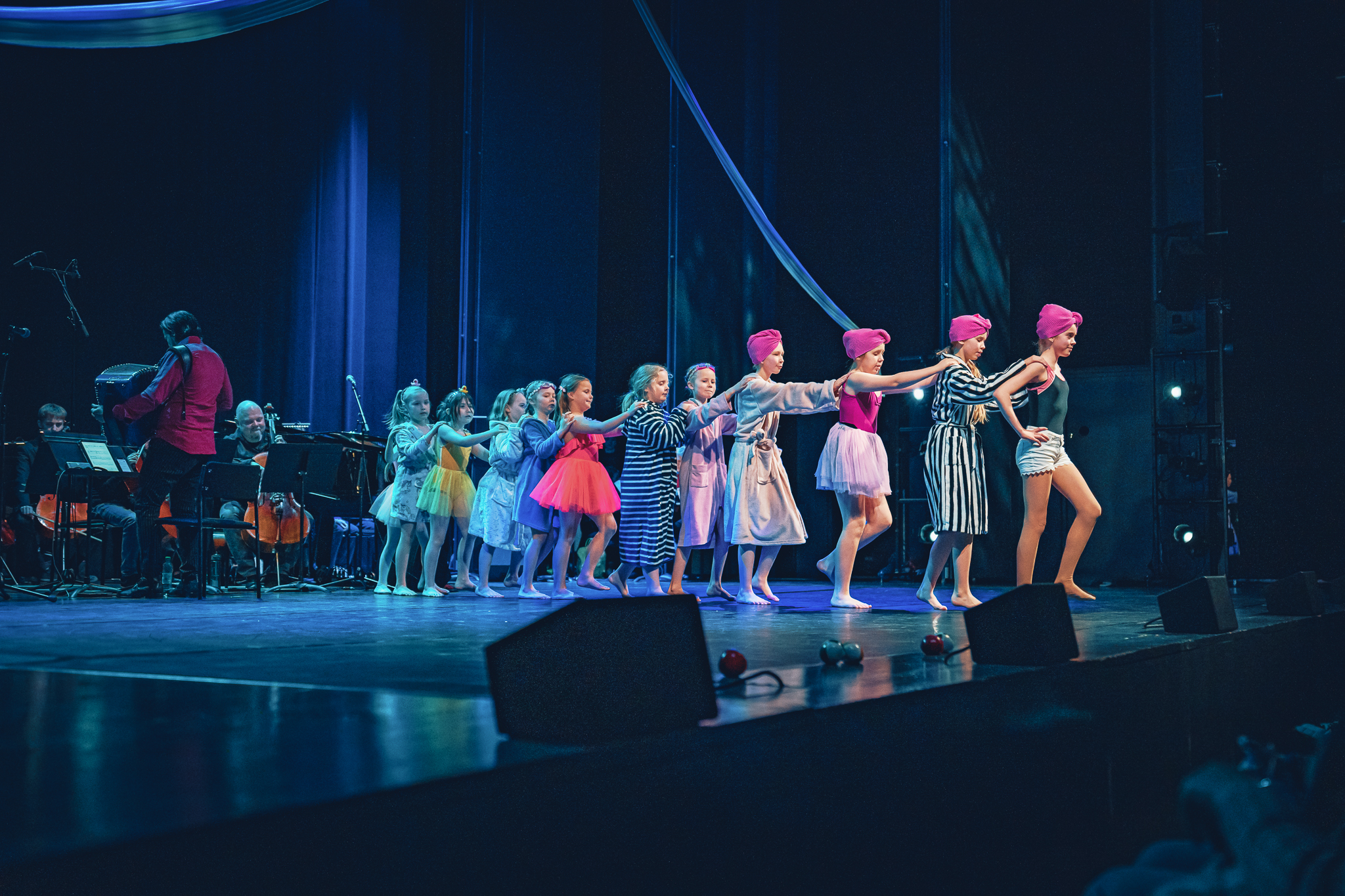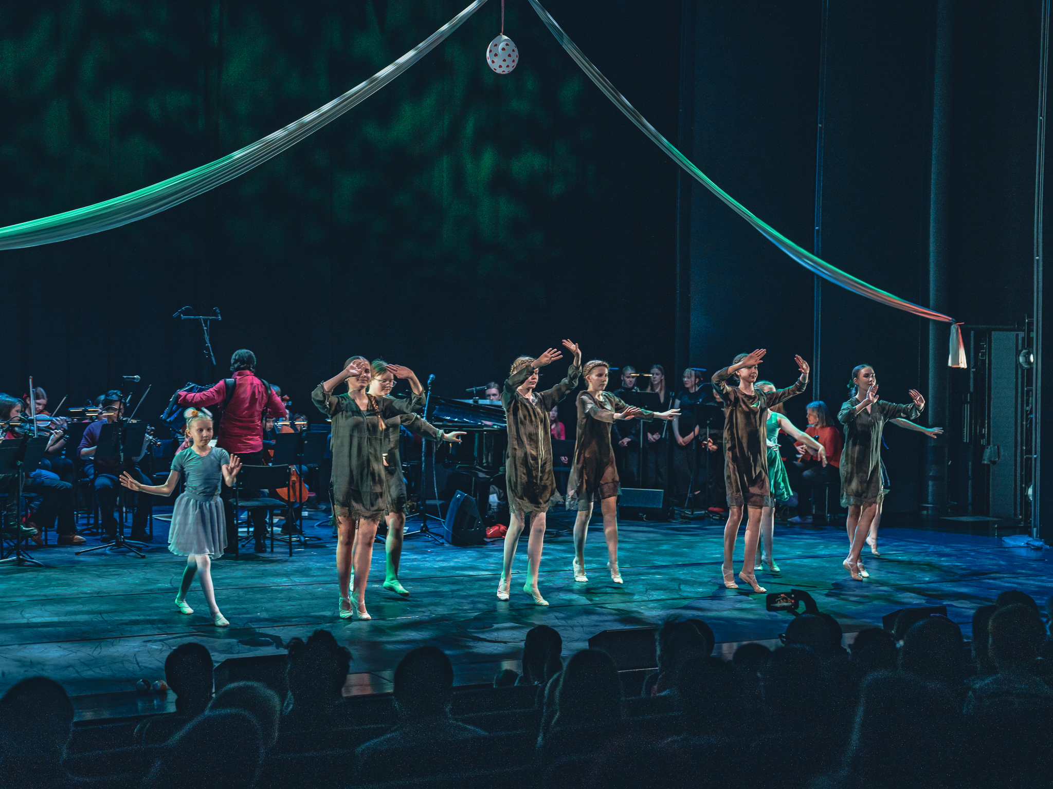 På scenen medverkade över 60 barn och ungdomar tillsammans med professionella artister och en orkester bestående av lärare. Den tvåspråkiga föreställningen kombinerade musik, dans, teater och cirkus till en berättelse som berörde både barn och vuxna.