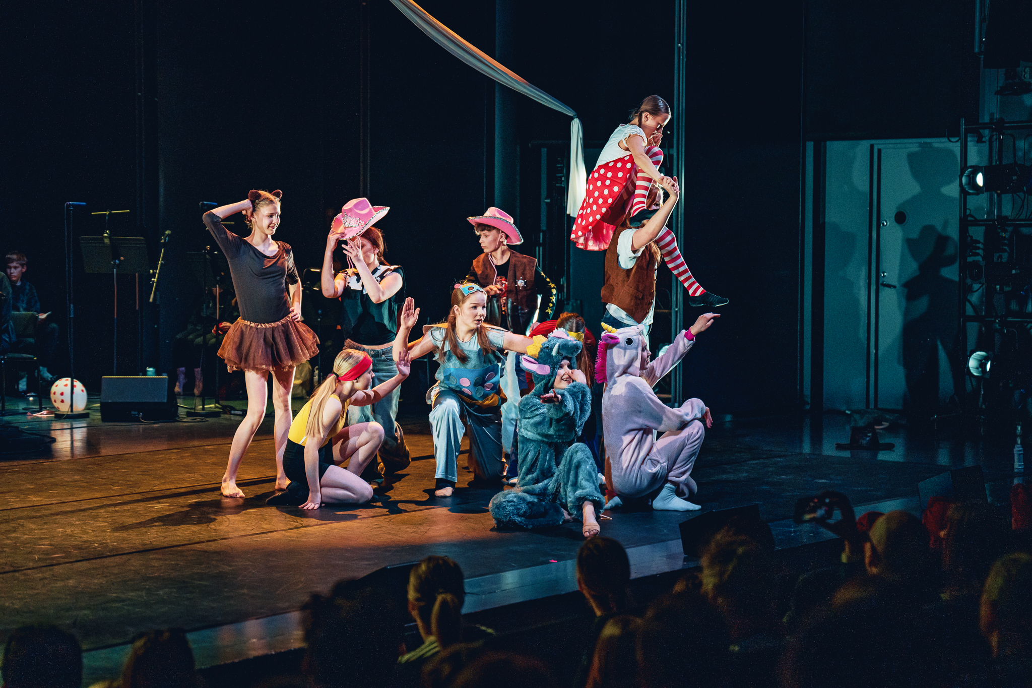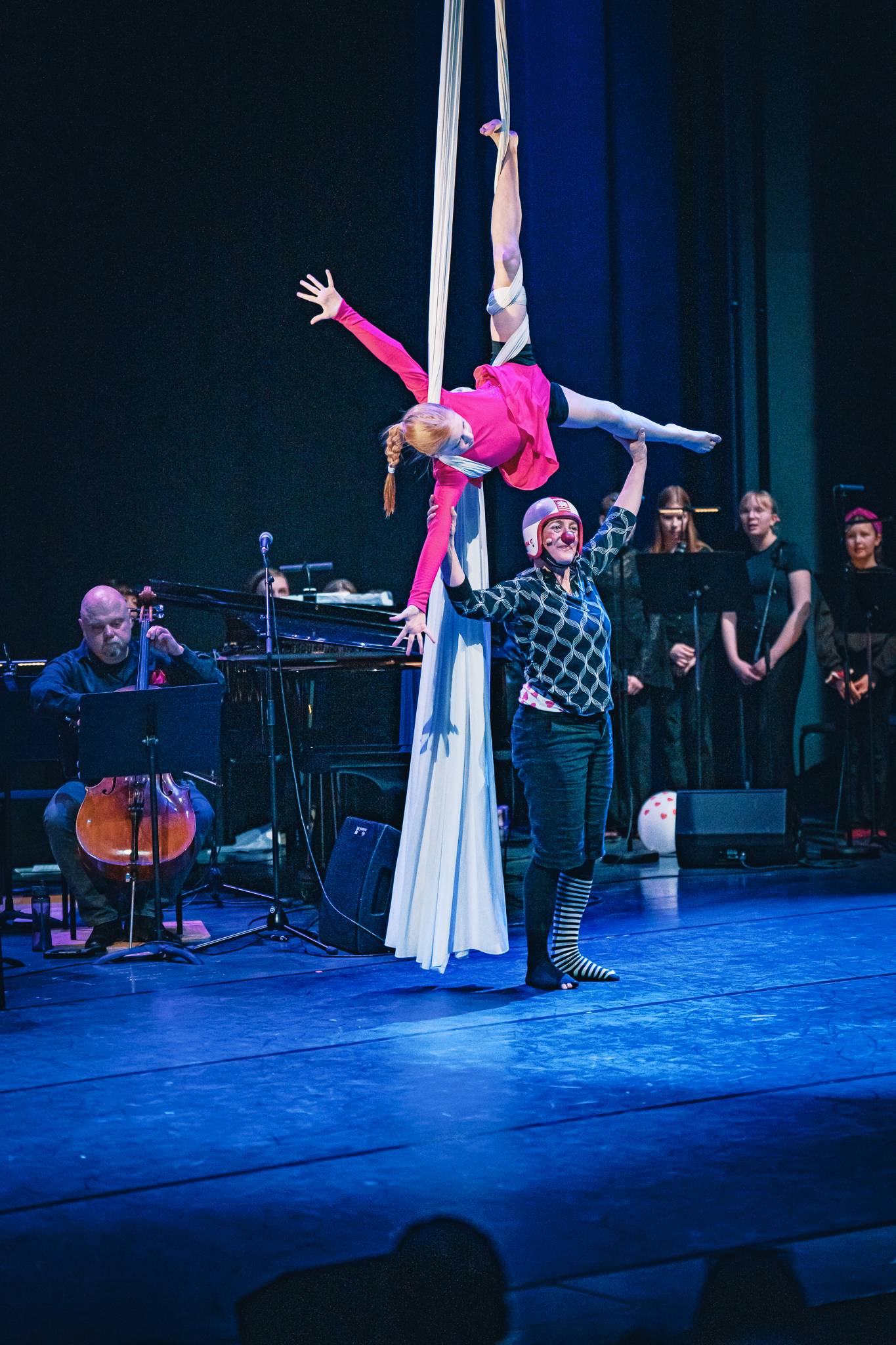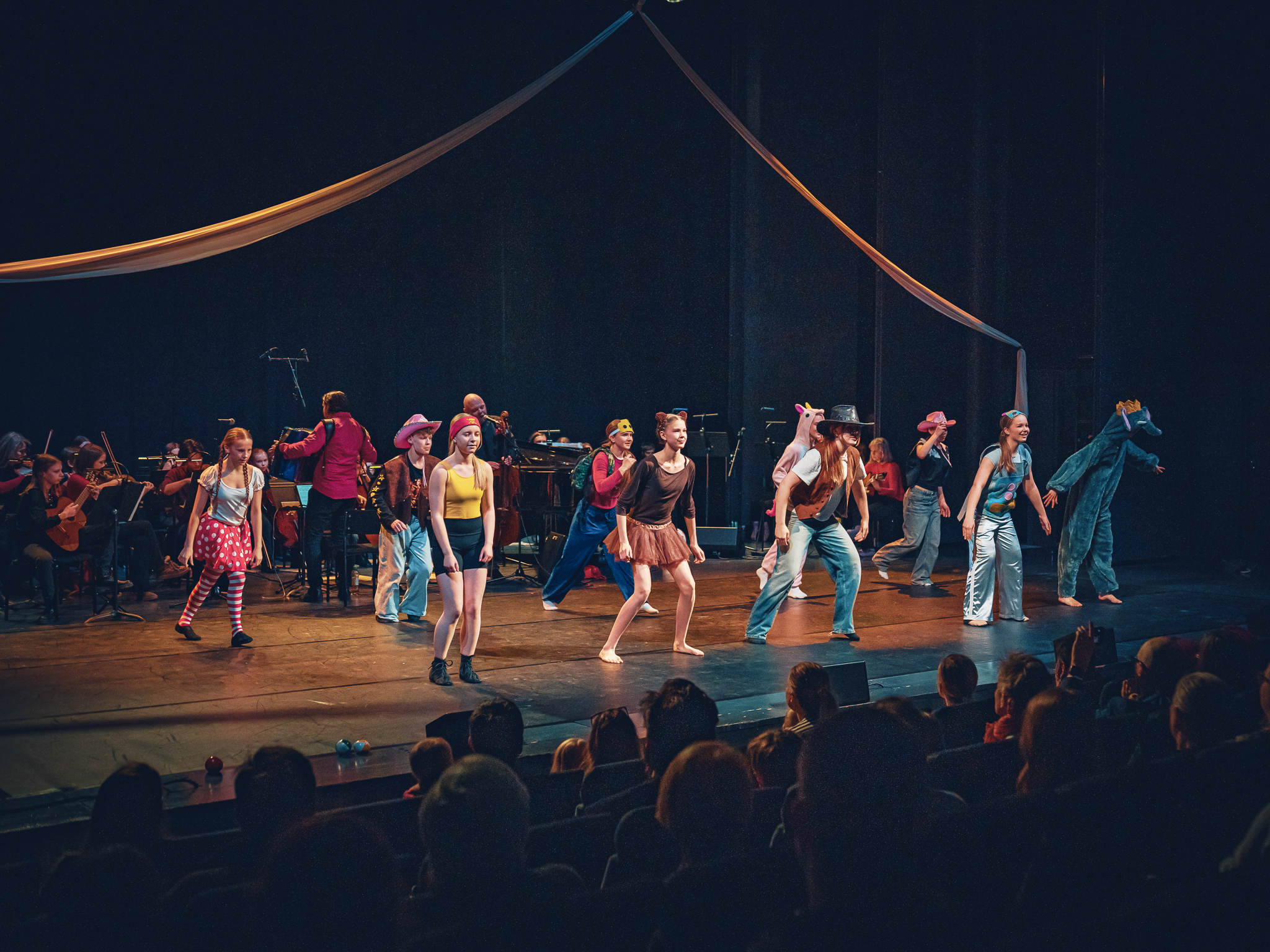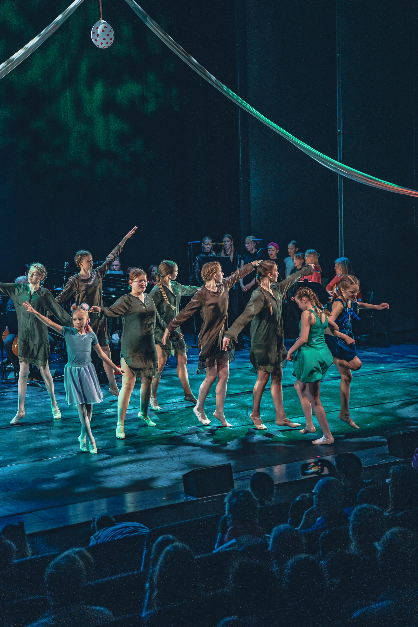 På scenen medverkade över 60 barn och ungdomar tillsammans med professionella artister och en orkester bestående av lärare. Den tvåspråkiga föreställningen kombinerade musik, dans, teater och cirkus till en berättelse som berörde både barn och vuxna.