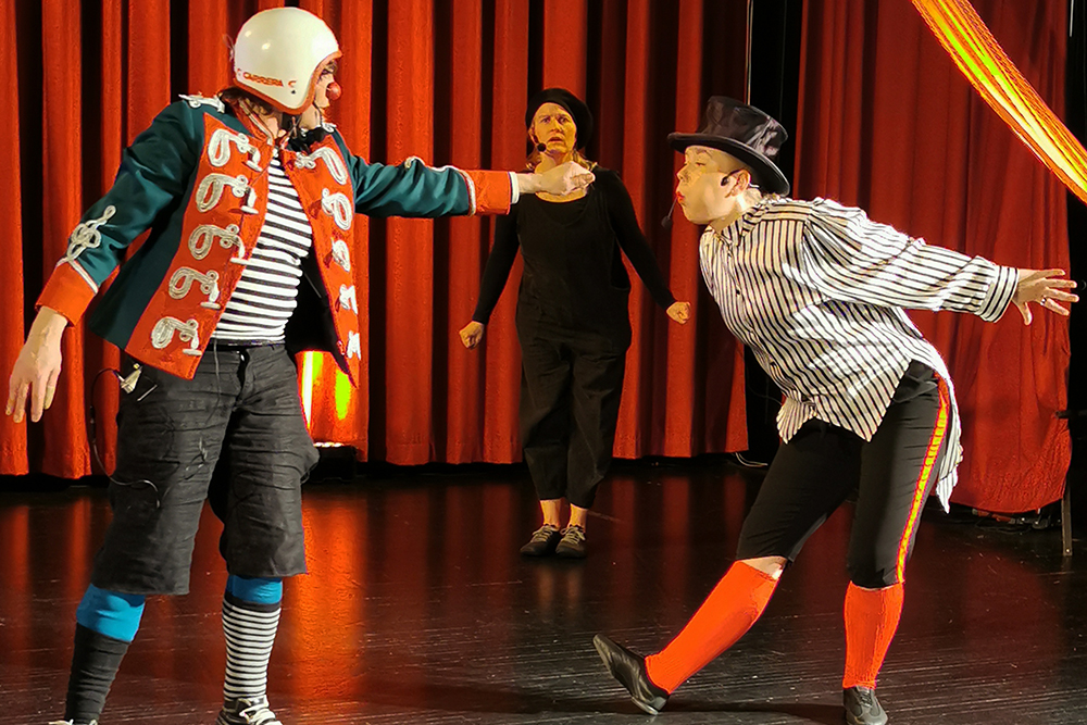 Tarinaa vie eteenpäin hurmaava esiintyjäkaarti: Klovni OHO (Karoliina Nordin), tirehtööri Tipparsson (Sofianna Salmi) sekä Varjo (Pauliina Vesslin).